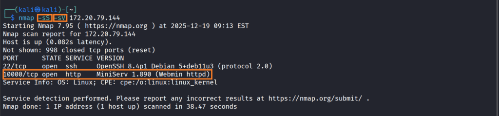 Burada -sS ve -sV parametrelerini kullanarak hem versiyon taraması yaptık hem de yarı açık tarama yaptık bunun sebebi de TCP portuna tam bağlanmadan hızlı tarama yapmak.