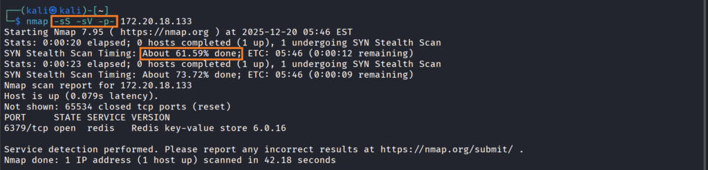 Yarı açık tarama olarak bilinir. Tam bir TCP bağlantısı kurmadığı için daha hızlıdır ve hedef sistemde daha az iz bırakır. (Root yetkisi gerektirir)