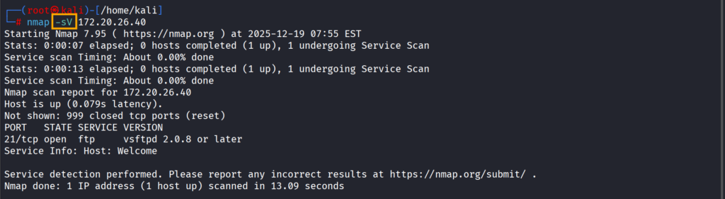 -sV parametresi bize açık portların arkasında hangi servis ve sürümlerin çalıştığının verir.